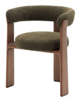 The Granite Armchair is upholstered in thick, two-tone chenille and has solid ash wood legs in a walnut or natural timber finish. It has a medium seat firmness. Fabric made from recycled material and with a GRS certificate. Wood with FSC 100% chain-of-custody certification and sourced from a responsible forest management model.