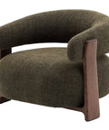 The Granite Lounge Chair is upholstered in thick, two-tone chenille and has solid ash wood legs in a walnut or natural timber finish. It has a medium seat firmness. Fabric made from recycled material and with a GRS certificate. Wood with FSC 100% chain-of-custody certification and sourced from a responsible forest management model.