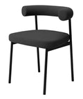 The Harlow Lounge Chair boasts a minimalist yet chic design, featuring sleek black metal legs that add a touch of modern elegance to any room.