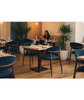 Upholstered in Warwick Dion (51,000 Martindale), it’s a soft, tactile fabric that stands up to busy service. Choose a sleek Black frame or a Light Walnut veneer look to complement contemporary restaurants, bistros and hotel dining rooms.