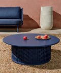 Sedalis coffee table is made of lightweight aluminium and hand-woven UV-resistant rope cord, reinforced with a steel base for stability. Suitable for indoor and outdoor use. Metal pieces have E-Coating treatment and polyester powder coating, providing UV-resistance.