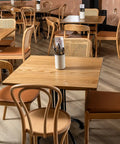 - Our Contribution: For this alfresco furniture space, we introduced natural timber elements, including classic bentwood chairs, cane backed Sienna chairs, and Idalia chairs in Natural Beech and Ash timbers. These were paired with complementary elm table settings to create a light, inviting atmosphere, ideal for relaxed gatherings.