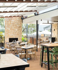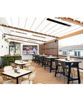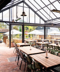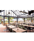 In the award-winning beer garden guests can enjoy custom spotted gum tables paired with Helen Chairs in black and olive. In the Atrium custom tiled tables with Josephine Chairs, custom tiled Dry Bars with Quniby Bar stools and beautifully crafted timber herringbone dry bars with Helen Bar Stools in Olive provide both style and comfort, creating the perfect setting for a drink, meal, or social gathering.