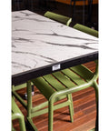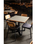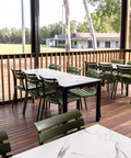 Finally, the alfresco area, which boasts picturesque parkland views, incorporates Firestone, Versilia, and Amarillo Oak Compact Laminate Table Tops, beautifully paired with Henley Dining and Bar bases.
