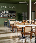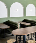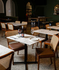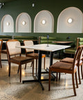 The Prospect Hotel & Cellars features a main bar and stylish dining room furnished with Sienna Chairs in Walnut and Marmo di Torre tables, as well as Natatio Walnut dry bars. The dedicated function space is equipped with Aimin Chairs in dark green upholstery and Function Tables in Marmo di Torre. An alfresco area, fitted with bolt-down Marmo di Torre compact laminate tables, completes the venue’s offering—altogether accommodating up to 220 guests.